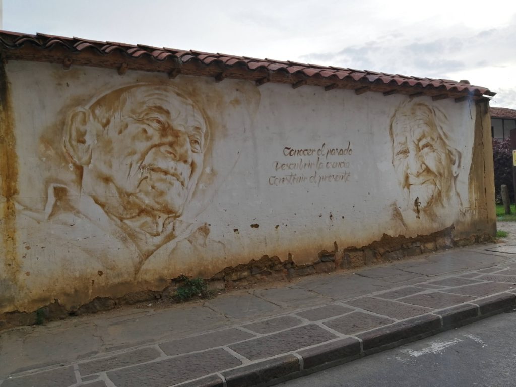 El 1 de abril, después de estar en Bucaramanga, viajamos a San Gil, un pueblo imperdible según las recomendaciones de viaje. Cuando llegamos, tomé una fotografía de un mural cerca al parque principal, una pintura de dos ancianos con una frase que decía: «conocer el pasado, descubrir la esencia, construir el presente» y lo puse en mis estados de WhatsApp, con la leyenda San Gil. Ese primer día, fuimos a comprar unos tenis y ropa deportiva para los chicos, porque en el itinerario ellos habían programado al día siguiente, una excursión de deportes extremos a la que no pude sumarme. Cenamos en el parque y fuimos al hotel. Allí pregunté qué podía hacer en los alrededores, además de seguir la recomendación de mi madre de visitar el parque El Gallineral. Decidí que podía ir temprano a ese parque, escribir o leer un rato, visitar los cerros que aparecían en la guía turística del hotel, buscar dónde almorzar, dónde pasar la tarde y tomar cerveza hasta que los chicos volvieran de su actividad. Esa noche, mientras me preparaba para dormir, recibí un mensaje comentando mi estado de WhastApp. ¡Era el profesor! «Hola. ¿Estás en San Gil?» «Sí, llegué esta tarde, estoy con unos amigos» Tuvimos una conversación muy corta, con la coincidencia de que él también estaba con unos amigos, quienes además, también iban a hacer deportes extremos al día siguiente y él tampoco podía ir. «¿Qué vas a hacer?», preguntó. Entonces le describí mi plan, mismo que él también quiso seguir. Así que nos encontramos muy tempranito en la mañana en la entrada de El Gallineral.